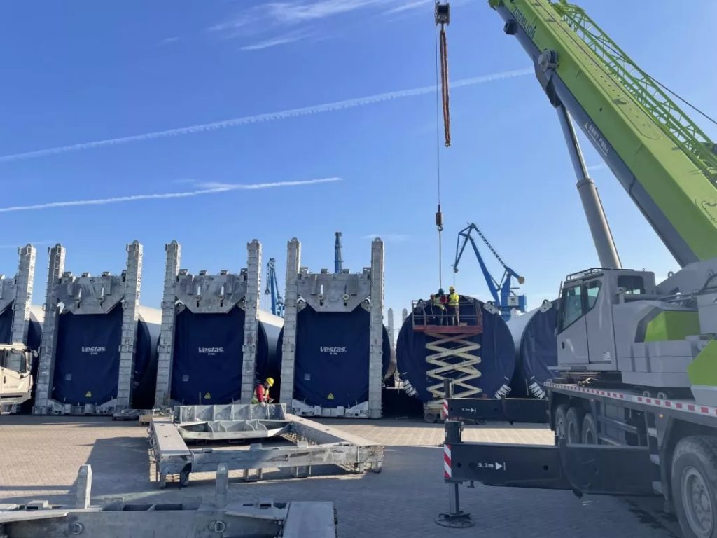 在開(kāi)發(fā)區(qū)政府的大力支持下,集團(tuán)多次拜訪塔筒制造商,共商投資建廠合作事宜,經(jīng)過(guò)半年多的磋商,最終成功爭(zhēng)取到投資計(jì)劃及首批風(fēng)電塔筒裝船業(yè)務(wù)。面對(duì)新任務(wù)、新挑戰(zhàn),集團(tuán)召開(kāi)多次專題會(huì)議研究并與客戶深入溝通交流,對(duì)作業(yè)關(guān)鍵環(huán)節(jié)進(jìn)行反復(fù)推演商討,優(yōu)化作業(yè)方案和流程設(shè)計(jì),在海輪靠港前1個(gè)月內(nèi),就完成了全部64段塔筒的場(chǎng)地規(guī)劃、卸車集并、支架安裝、筒身清潔、起吊裝船等一系列作業(yè)挑戰(zhàn),做好了船舶抵港前全部準(zhǔn)備工作,獲得了客戶的高度認(rèn)可。