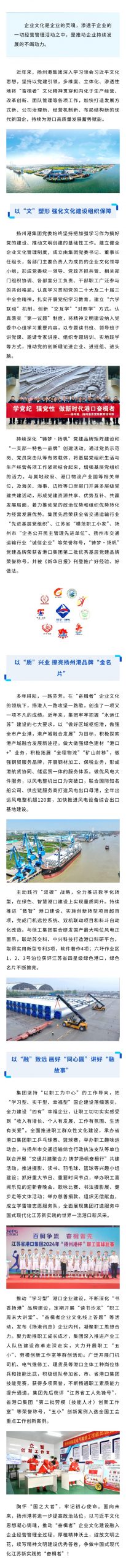 編者按:為貫徹落實(shí)省港口集團(tuán)“奮楫者”企業(yè)文化的核心理念,系統(tǒng)豐富企業(yè)文化“四梁八柱”中“揚(yáng)州港”特色內(nèi)涵,不斷增強(qiáng)企業(yè)文化的引領(lǐng)力、凝聚力、塑造力、輻射力,提高集團(tuán)文明度、美譽(yù)度、知名度,現(xiàn)開設(shè)【奮楫者 創(chuàng)未來】專欄,展示集團(tuán)各版塊與“奮楫者”文化的嵌入、融合、發(fā)展新圖景。